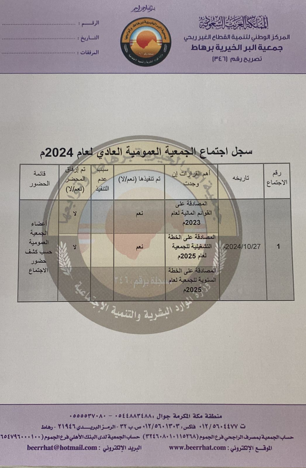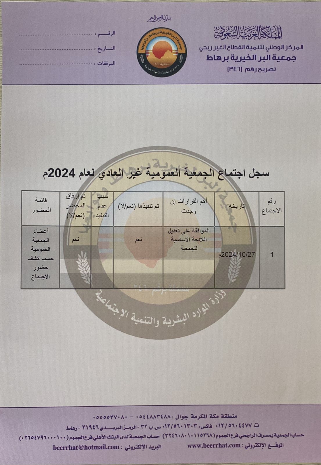 محاضر الجمعية العمومية محضر الجمعية العمومية لعام: 2024 نوع المحضر: غير عادي عرض الملف محضر الجمعية العمومية لعام: 2024 نوع المحضر: عادي عرض الملف محضر الجمعية العمومية لعام: 2024 نوع المحضر: عادي عرض الملف محضر الجمعية العمومية لعام: 2024 نوع المحضر: غير عادي عرض الملف محضر الجمعية العمومية لعام: 2024 نوع المحضر: عادي عرض الملف سجل اجتماع الجمعية العمومية لعام: 2023 نوع المحضر: عادي عرض الملف محضر اجتماع الجمعية العمومية لمصادقة القوائم الماليه لعام: 2021 نوع المحضر: عادي عرض الملف محضر أجتماع الجمعية العمومية لعام: 2020 نوع المحضر: عادي عرض الملف محضر اجتماع الجمعية العمومية لمناقشة ميزانية لعام: 2020 نوع المحضر: عادي عرض الملف محضر أجتماع الجمعية العمومية لعام: 2018 نوع المحضر: عادي عرض الملف